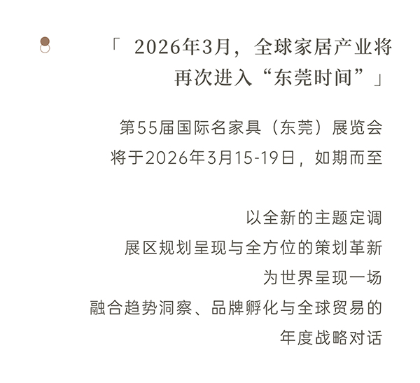 [摘要]第55届国际名家具(东莞)展览会将于2026年3月15-19日如期而至。
