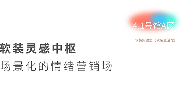 4.1号馆将围绕软装美学,打造全球软装灵感中枢,聚焦面料创新、色彩趋势、搭配艺术等软装核心要素,为软装设计师、买手店、高端业主提供一站式软装配套,成为软装行业的创新试验场。