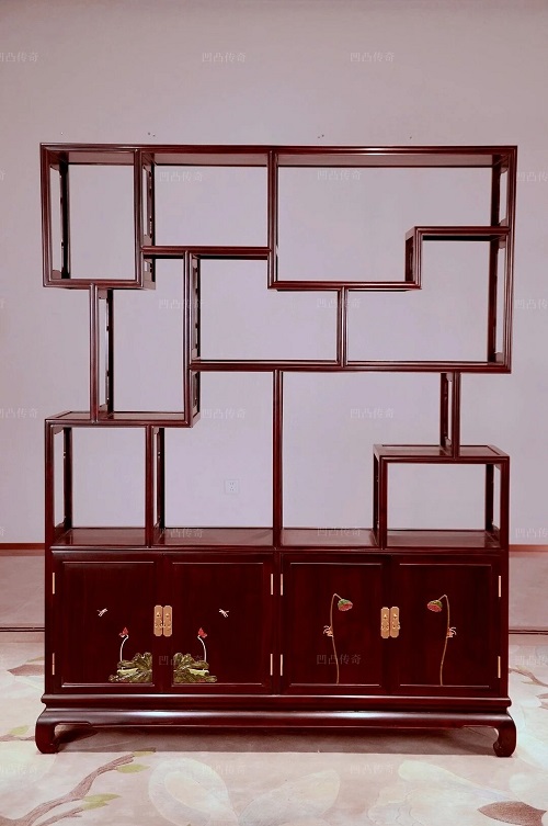 非遗《百宝嵌博古架》,器型端正大气,上虚下实的经典设计,让储物空间兼具层次感和实用性。