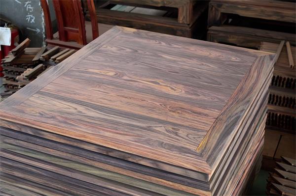 其心材多呈紫褐色、紫红色,带有少量黄色、黑色或紫色条纹,在阳光下色泽可变淡,呈现出动态的美感。