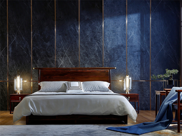 在卧室空间,人体工程学设计的阔叶黄檀床具,实现了东方养生理念与现代舒适性的完美融合。