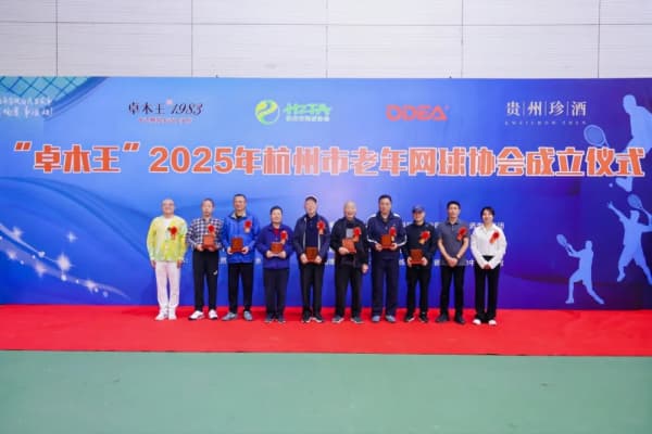 2025年10月29日,“卓木王”2005年杭州市老年网球协会成立仪式暨首届杭州市老年网球公开赛开幕式在黄龙体育中心隆重举行。卓木王总裁杜长江受邀出席活动。原浙江省人大副主任孔祥有、原杭州市委副书记史济煊、原浙江省人大财经委主任楼小东、原浙江省人大农工委主任吴鼎钧、浙江省网球协会顾问竺园、浙江省网球协会常务副会长赵雁、杭州市网球协会会长喻福明、杭州市体育局副局长吴璐琪等领导与嘉宾出席成立仪式,现场多位老年网球爱好者共同见证杭州老年网球事业的全新起点。