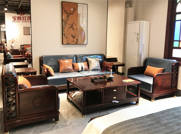 [摘要]家宝红木深耕红木家具领域数六十余载,近些年推出以黑酸枝(阔叶黄檀)为材质的新中式家具系列,其产品兼具东方美学与实用价值。