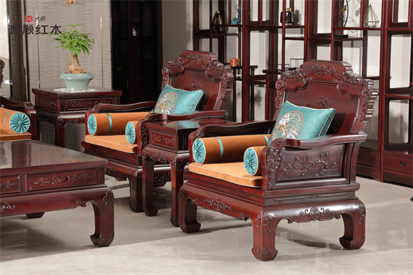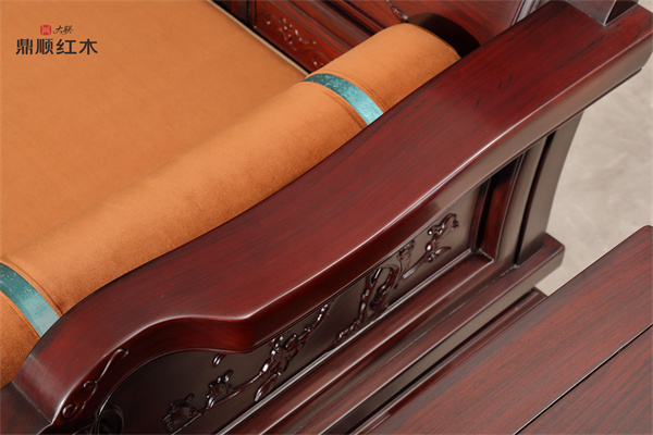 鼎顺红木还在沙发搭脑中融入吉祥意象——如阶梯状层层上升的造型,既展现结构层次,亦寄寓“步步高升”的美好祝愿,让功能与寓意相得益彰。
