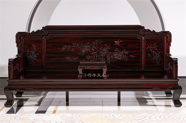 《富贵华堂沙发》沙发背板以玉兰、绶带鸟为主体纹样