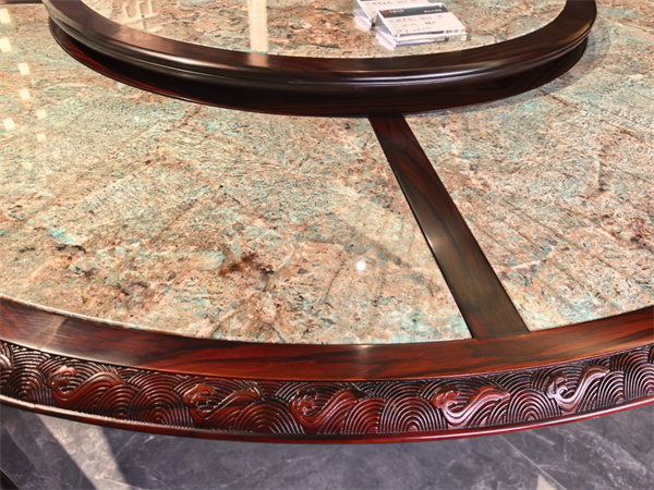 东林书院的条纹乌木新中式家具,不仅仅是对传统形式的简单复制,更是一场深入骨髓的设计革新。品牌在保持条纹乌木天然美感的基础上,大胆引入亚马逊绿奢石、珐琅彩等现代材质,通过色彩、形态与材质的创新组合,让古老的木材焕发出符合当代审美的新生命。