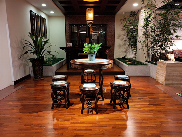 地面要清爽:浅色木地板、哑光地砖是红木家具的最佳搭档。它们能有效提亮整个空间,并与墙面呼应,形成柔和轻快的基调。
