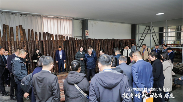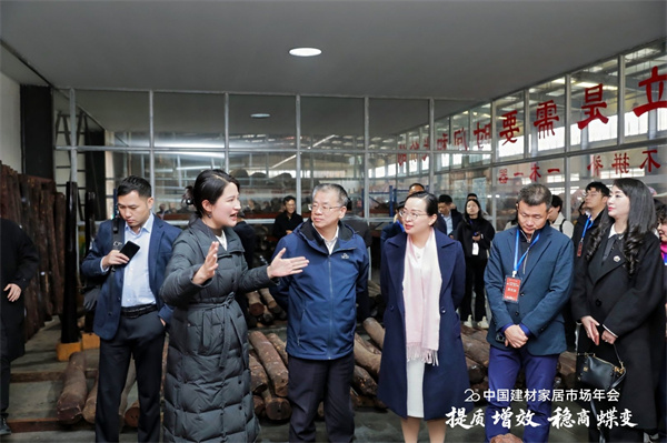 紧接着,与会嘉宾参观了巧夺天工红木文化博物馆和生产车间,沉浸式学习木材鉴别、榫卯工艺等知识,亲眼见证传统红木工艺与现代智能制造的完美融合。在随后的“创新驱动 持续精进”环节,董事长张爱冬的主题演讲《奋斗百年路,启航新征程》将整场大会推向高潮。
