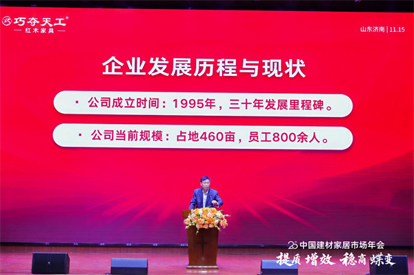 冬意渐近,群贤毕至。11月15日,以“提质 增效 稳商 蝶变”为主题的第20届中国建材家居年会在山东巧夺天工红木(以下简称“巧夺天工”)总部大礼堂隆重举行。