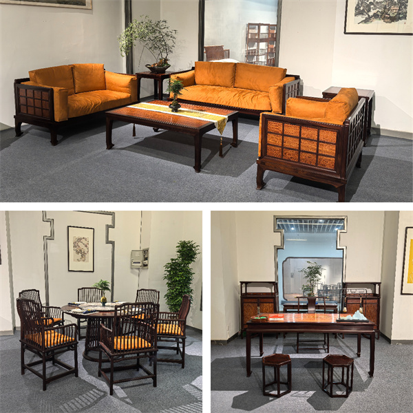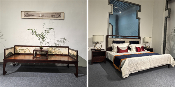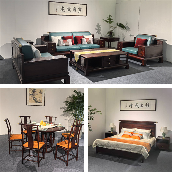 东邦红木创造性地将大果紫檀和红酸枝两种名贵红木进行深浅搭配;在沙发与床的设计中注重软装与木头的和谐结合;罗汉床与圆桌则巧妙融入大理石元素。这些创新设计,既保留了红木的温润质感,又增添了现代生活的舒适度。
