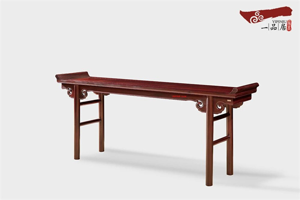 一品居红木的翘头柜给出了清晰注解。柜子两端微微上翘的柜首,恰似文人提笔悬腕的姿态,既透着昂扬向上的进取之志,又藏着不事张扬的内敛之智,这抹优雅弧线,正是“过刚易折、过柔则靡”的中庸哲学的具象化表达。