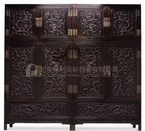 清乾隆紫檀高浮雕九龙西番莲纹顶箱柜以9315万元人民币成交,创下中国古董家具的拍场新纪录