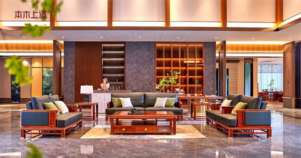 客厅的国潮轻奢红木沙发,兼顾待客礼仪与日常舒适;卧室的收纳柜体,巧妙融入红木纹理与实用分区;书房的茶桌书架,自带文人雅士的静谧氛围。