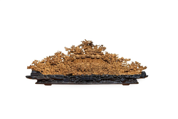 此作不仅是一件木雕,更是一场在珍稀整料老山檀香木上展开的宏大叙事。选材严苛,意在永恒——老山檀木质细腻、香气醇和且历久弥芳,为作品奠定了尊贵不凡的基底。