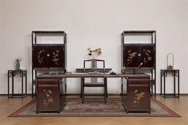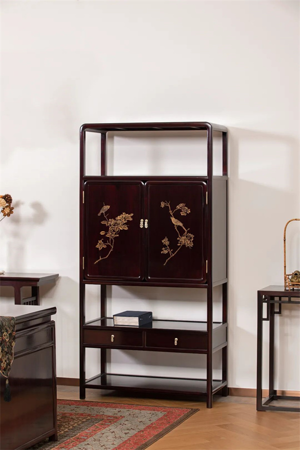 “戗金”是此书柜的灵魂,匠人首先需具备深厚的雕刻功底,在坚硬的红木面板上,如同在纸上作画一般,以刀代笔,精准地雕刻出花鸟图案的轮廓,随后,使用传统工艺秘制而成的金地漆,趁其将干未干之际,用特制的工具一点点地将金粉“戗”入雕刻好的凹陷纹路中。这一步是对耐心与经验的终极考验,力度需均匀,时机需精准,才能确保金粉牢固嵌入,且光泽持久。