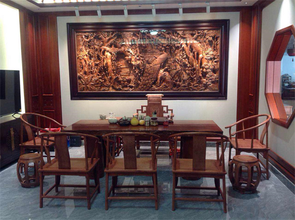 名嘉坊红木拥有国内一流的制造设备与国家级认证的专业技术团队,不仅能精准把控木材的干燥、雕刻、打磨与漆艺,更具备全屋空间规划与定制化生产能力。从客厅的背景墙、博古架,到书房的整体书柜、茶室的榻榻米,再到卧室的衣帽间与寝具,品牌提供一站式红木整装解决方案,让红木之美贯穿于生活的每一个角落。