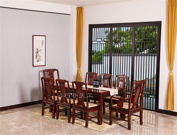 经典系列:鸟语花香:作为品牌的口碑力作,该系列涵盖沙发、班台、大床、餐桌等全场景家具,以传统红木工艺为基础,融入“鸟语花香”的吉祥寓意,雕刻精美、线条流畅,兼具实用性与装饰性,成为经典红木风格的代表之作,适配中式装修的各类空间。