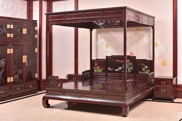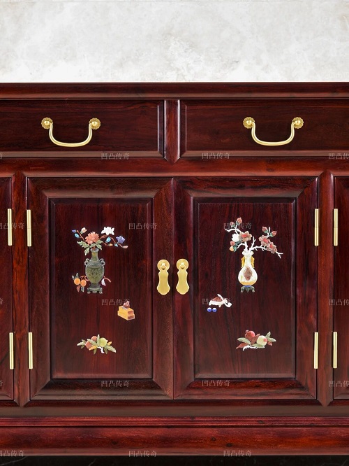 百宝嵌与红木家具的结合,堪称"天作之合"。红木的沉稳厚重与百宝的璀璨华美相得益彰,既能彰显主人的尊贵身份,又能提升家居的艺术品位。在紫檀、黄花梨、大红酸枝等名贵木材上,工艺师们精心设计镶嵌图案,使百宝嵌的绚烂与红木的沉稳相得益彰。既有实用性,又具艺术观赏价值。