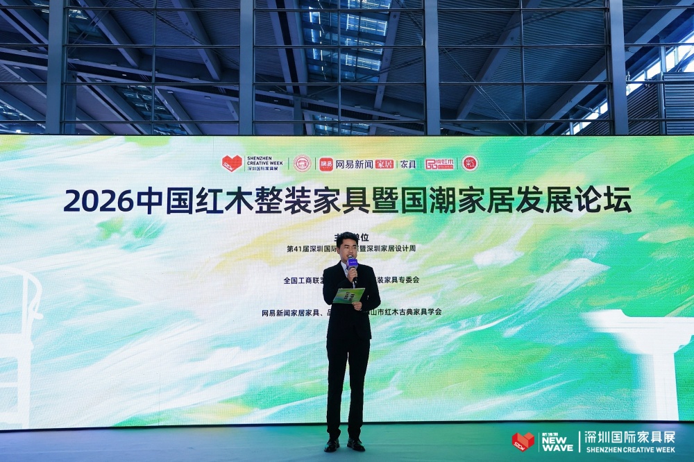 本次2026中国红木整装家具暨国潮家居发展论坛由第41届深圳国际家具展暨深圳家居设计周主办,全国工商联艺术品商会红木整装家具专委会联合主办,网易新闻家居家具、品牌红木、中山市红木古典家具学会协办,得到众多知名红木企业鼎力支持,同时吸引了全国主流权威媒体聚焦报道,成为连接行业资源、传递前沿理念的重要桥梁。