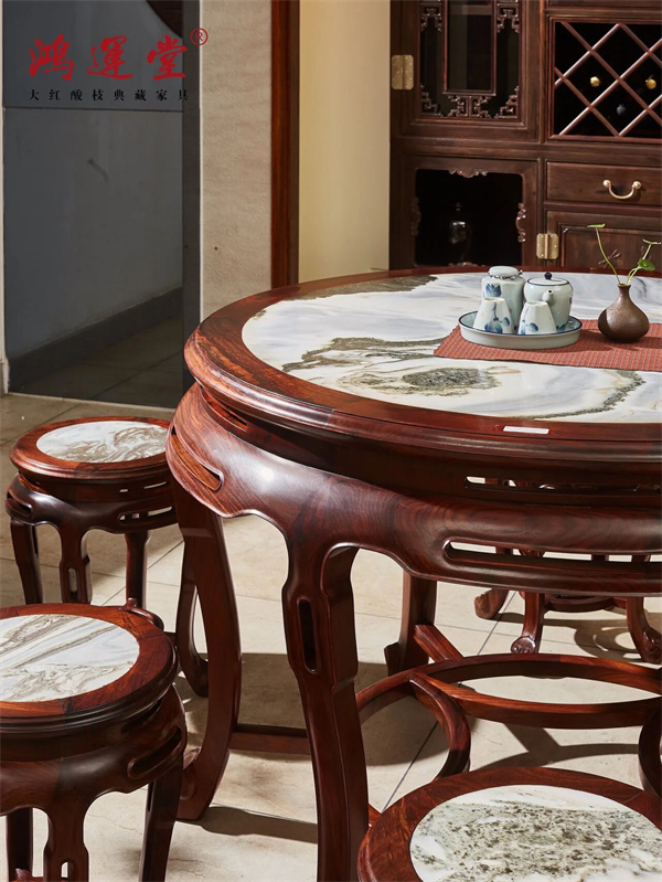 鸿运堂大红酸枝家具,不仅是家居,更是可以传世的艺术品:客厅的大红酸枝沙发,待客有面,团圆有温;餐厅的圆形餐桌,围坐喝粥,更显家的仪式感;书房的明式书桌,静享时光,品味中式风雅;粥香会散,但木韵长存。一碗粥的用心,温暖当下。一件家具的匠心,暖一生、传三代。