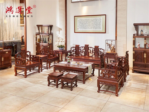 我们以珍贵大红酸枝为载体,让承载着吉祥寓意的红木家具,为您的居所增添一份文化的厚重与吉祥的祝福,与您一同见证国盛家兴,月圆人安。鸿运堂全体同仁恭祝您及家人:双节快乐,福寿安康,阖家幸福!
