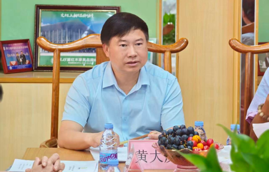 随后,众人一同前往大涌,走进中山知名红木品牌——红古轩。中国家具协会副理事长、全国工商联红木整装家具专委会主席、红古轩创始人吴赤宇亲自接待,并热情介绍了品牌的发展历程、产品设计理念以及在新中式红木家具领域的创新实践。