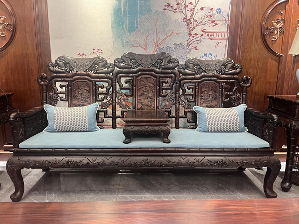 清式家具的精致厚重,则体现在沙发、罗汉床等作品中,高浮雕装饰与沉稳结构相得益彰,既彰显宫廷御用的华贵气质,又通过细节优化提升实用性。