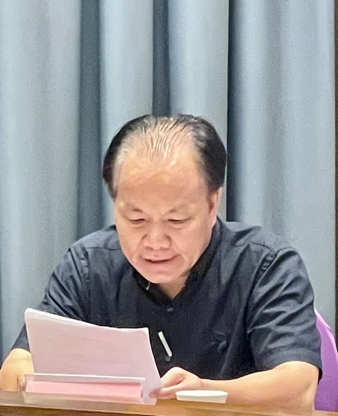 学会常务副会长李成贵宣读《中山市红木古典家具学会第三届第一次会员大会筹备工作方案》