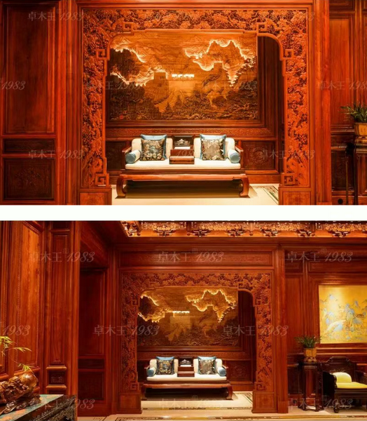 背景墙两侧,大叶紫檀为材,