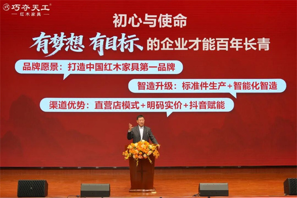 2025年,巧夺天工从区域走向全国的战略已经明确。2026年,我们要在持续开拓北方市场的基础上,进一步开拓南方市场,在长三角、珠三角等经济文化发达地区,稳步开设新旗舰店。这不是简单开店,是把我们的直营模式、红木文化,和南方的市场、审美融合起来。走向全国,需要大家保持学习心态,让巧夺天工在每一个城市都扎下根、开出花。
