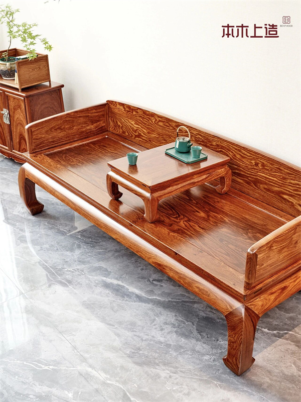 就像这张罗汉床一样,它安静地立在那里,木纹如水,线条如诗,等待每一个愿意慢下来的人,坐上去,喝杯茶,度过一个不急不躁的下午。