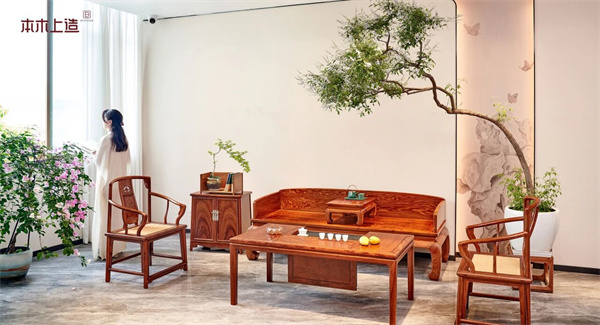你可以把罗汉床放在客厅正中,围合感天然形成一处社交中心。来客时,它是坐席;独处时,它是卧榻。前面配一张茶台、两把单椅,饮茶、读书、聊天、小憩,全在一处完成。