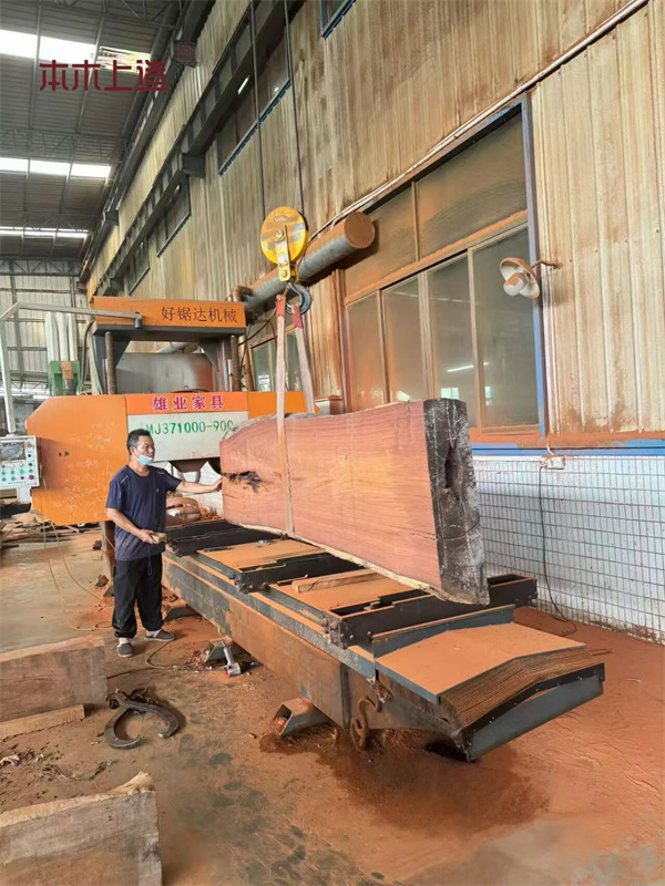 这样开出来的料,纹理纯天然,木纹走向舒展漂亮,触摸上去,能感受到木材本身的温润与韧性。独板的连续纹理,将自然之美完整地保留下来,由左至右、由上至下,一气呵成。