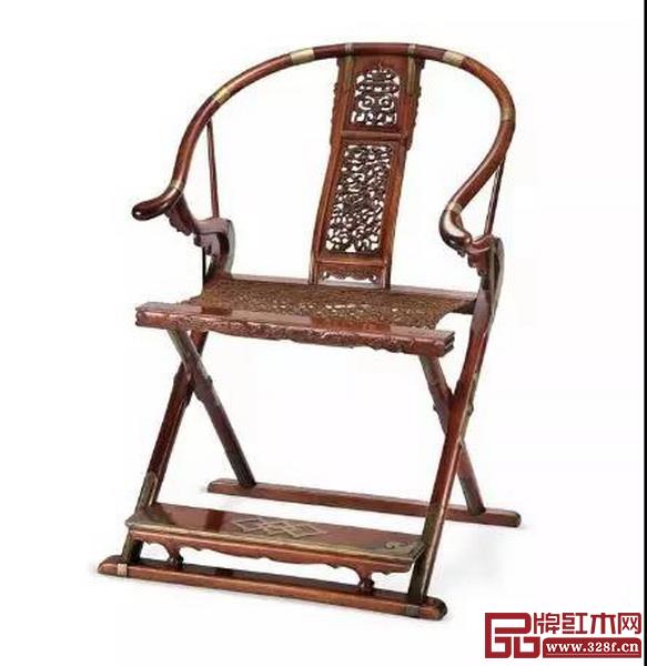 明末清初 黄花梨麒麟寿字纹圈背交椅